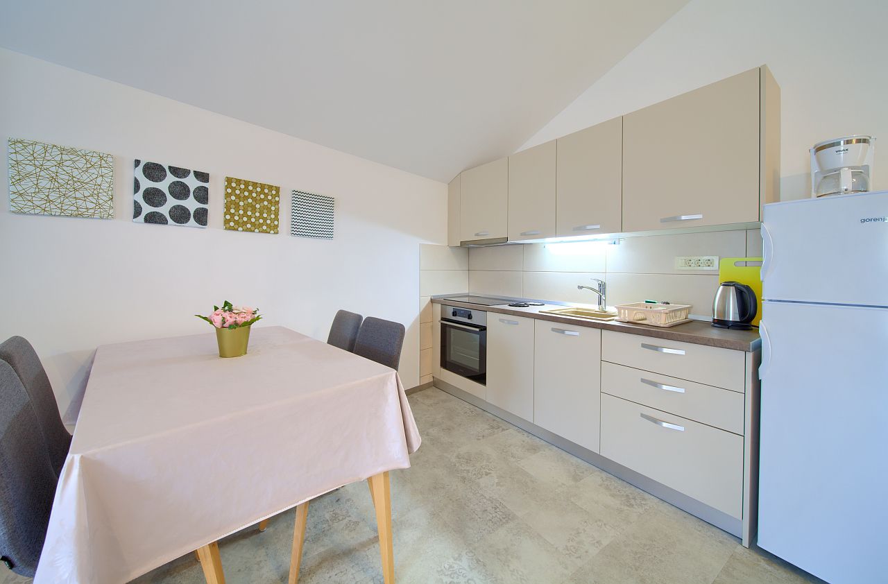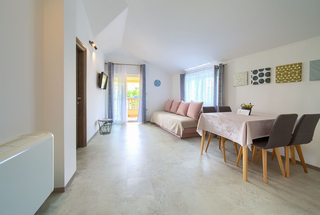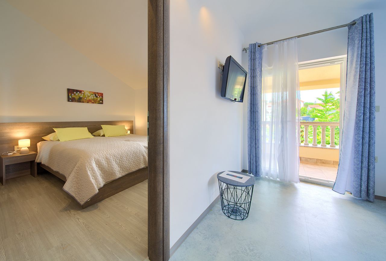 Apartment of 50m2, located on the 2nd floor. It has one bedroom with double bed and bathroom, equipped kitchen, living room, main bathroom, terrace overlooking a side street. In the living room there is an extra bed for two people.