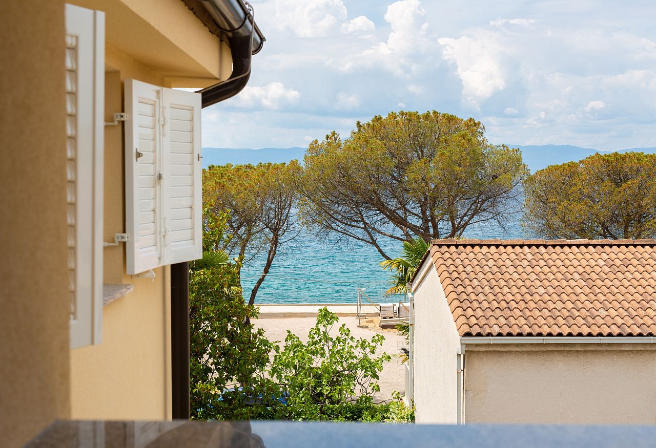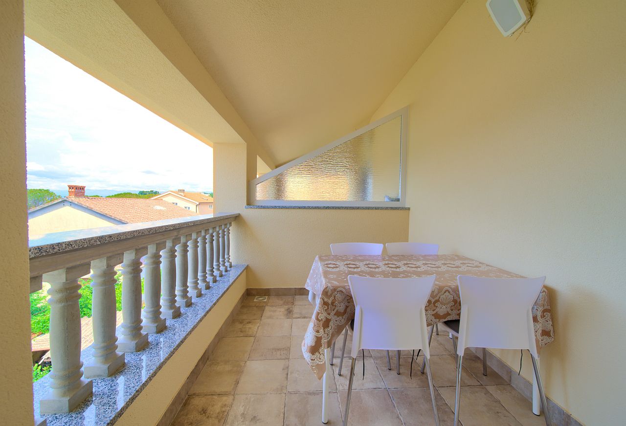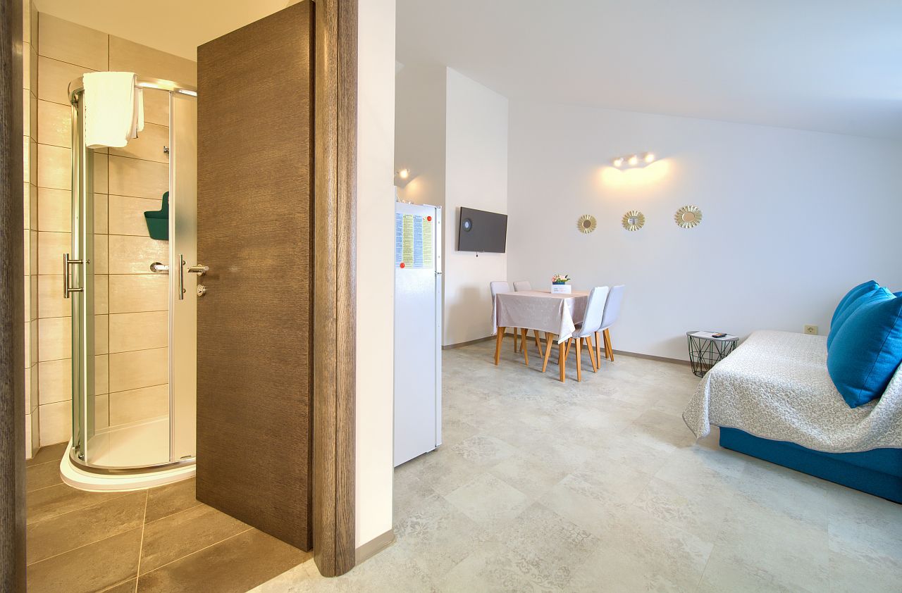 The apartment of 45m2 is located on the 2nd floor. It has a bedroom with double bed and bathroom, equipped kitchen, living room, main bathroom and terrace facing the sea. In the living room there is an extra bed for two people.