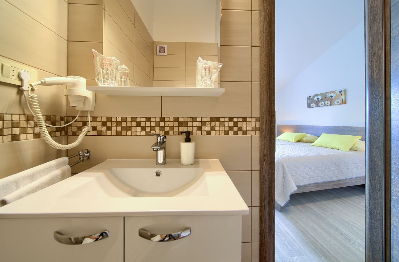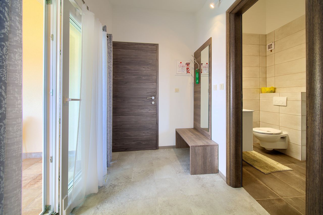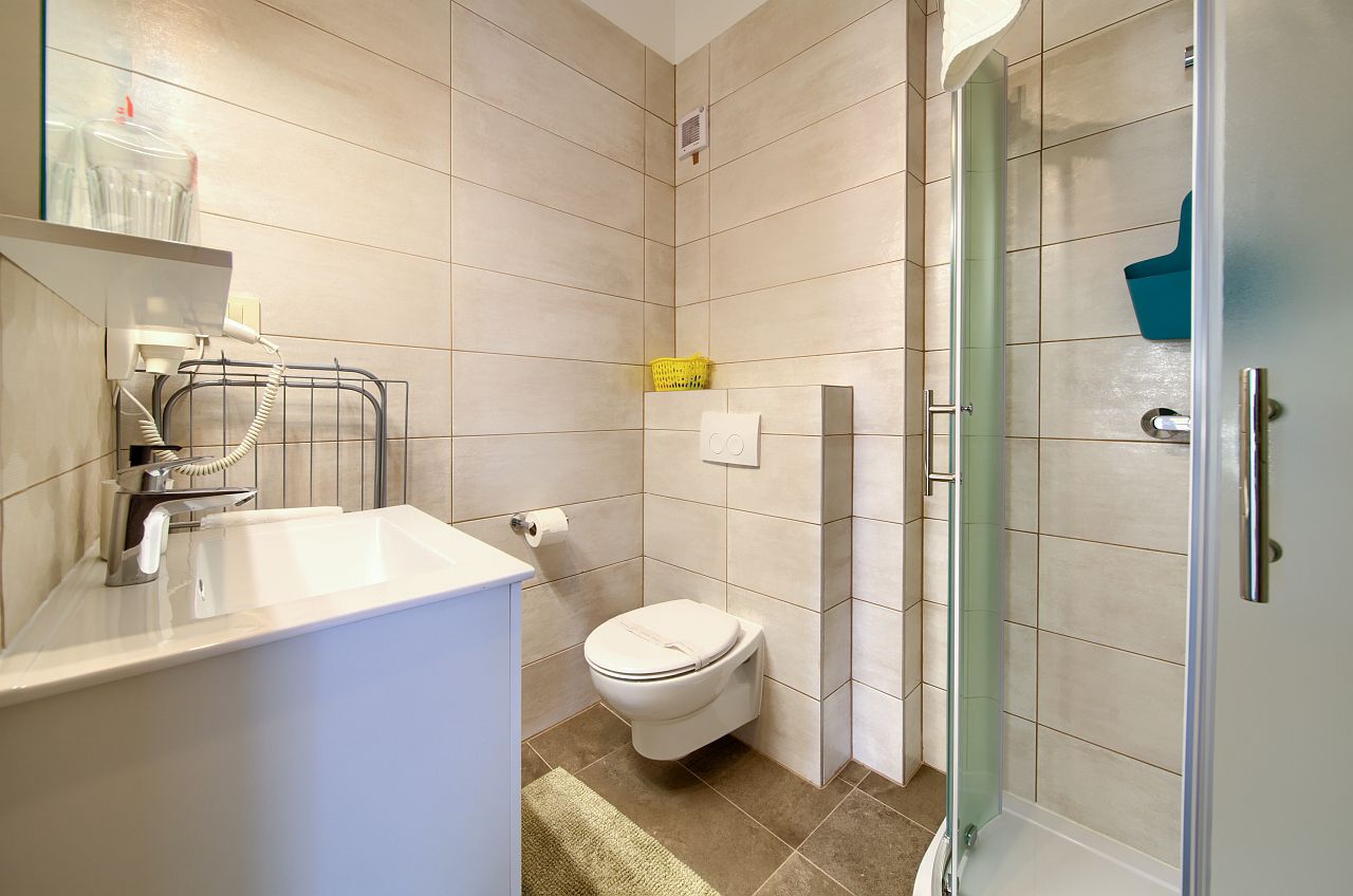 The apartment of 45m2 is located on the 2nd floor. It has a bedroom with double bed and bathroom, equipped kitchen, living room, main bathroom and terrace facing the sea. In the living room there is an extra bed for two people.